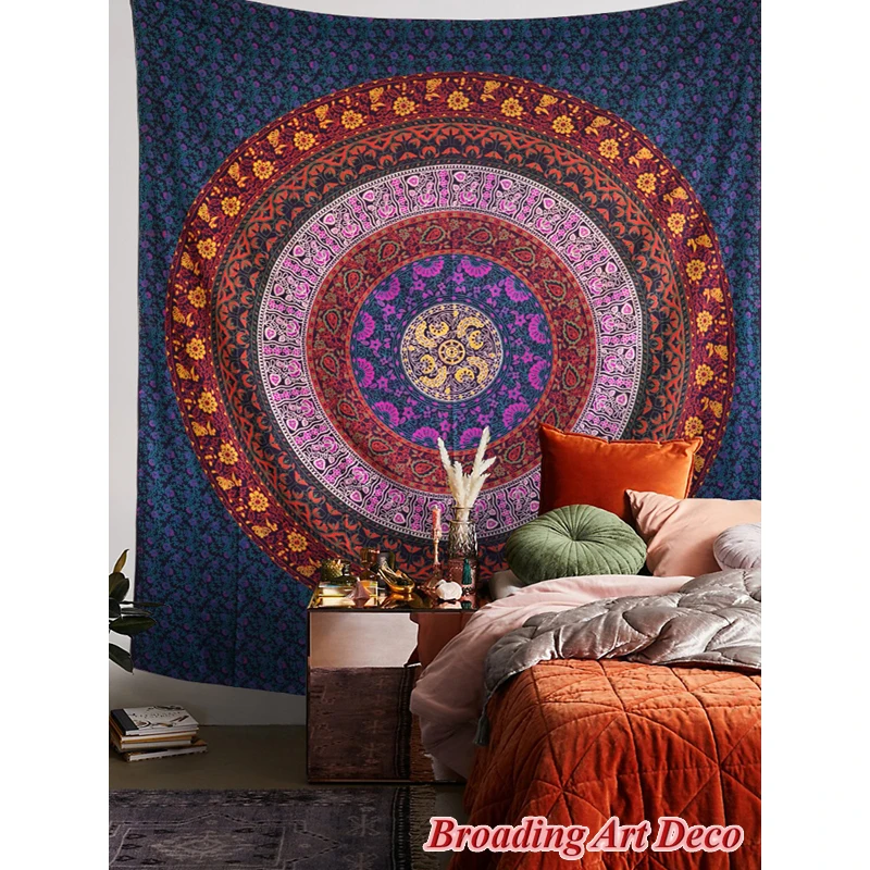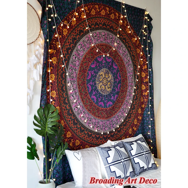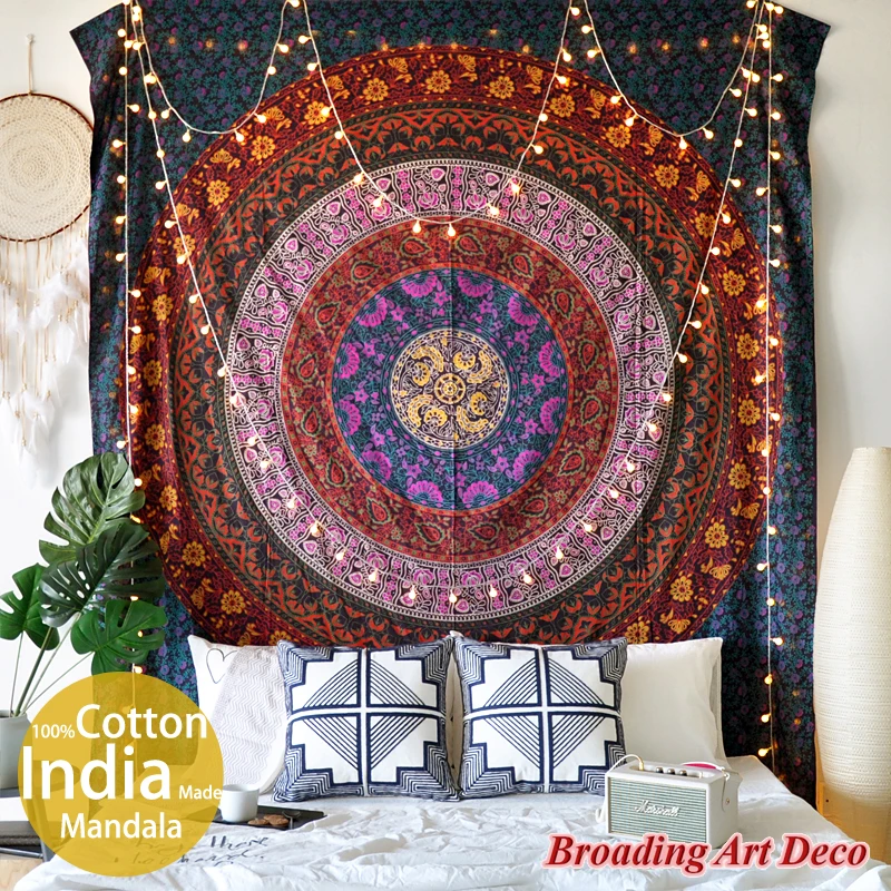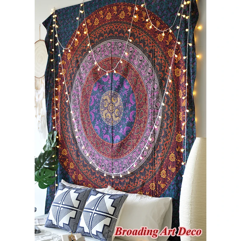 Special Offer 인도 수제 100% 코튼 만다라 태피스트리 벽걸이 "플라워 서클" 스크린 프린트 Boho Tapestries Beach Yoga Mat 210x230CM Discount [NEW!!] Today!