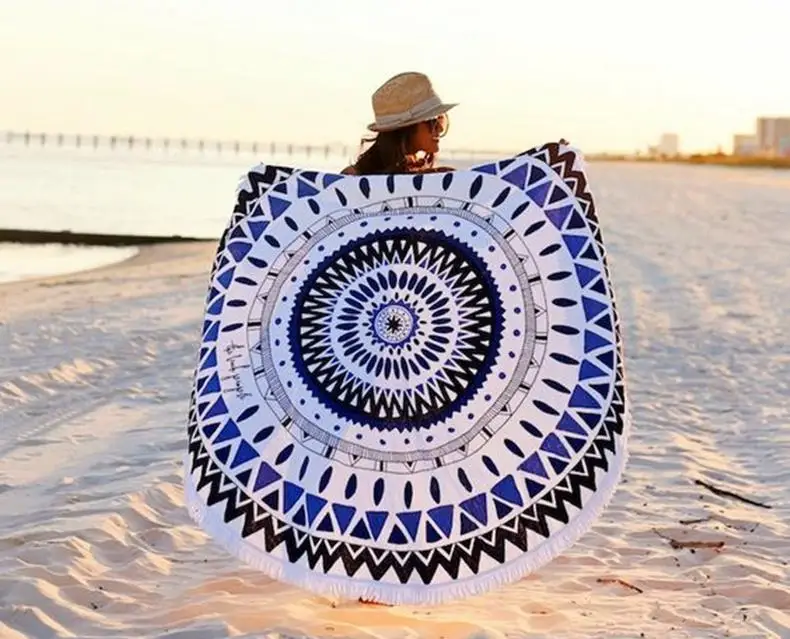 Product Name: 라운드 비치 타월 150*150cm/59*59 ''목욕 타월 술 장식 기하학 프린트 목욕 타월, 여름 스타일 서클 비치 요가 매트