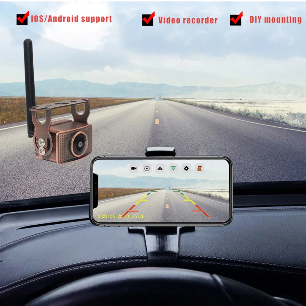 Product Name: 180 도 어안 무선 자동차 후면보기 카메라 와이파이 반전 카메라 대시 캠 HD 나이트 비전 버스 트럭, 아이폰 안드로이드용