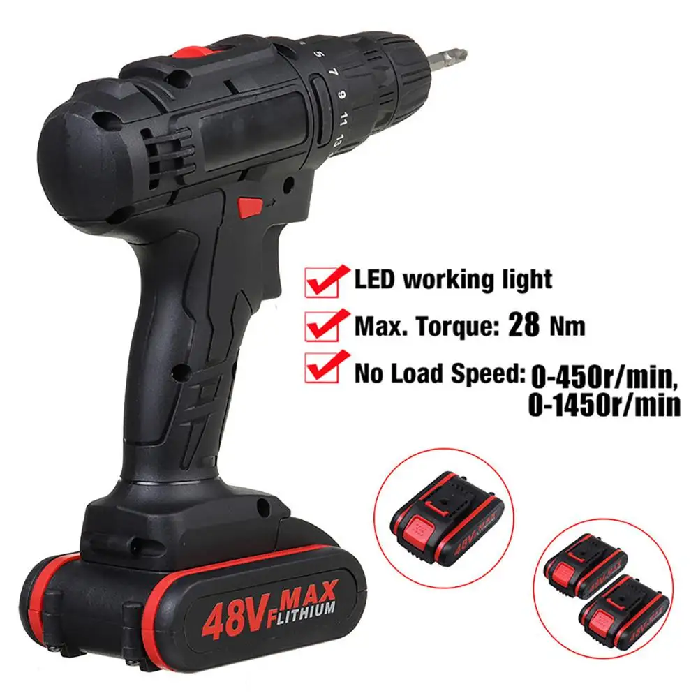Special Offer 무선 전기 임팩트 드릴 스크루 드라이버, 48V, 15 토크 충전식 듀얼 스피드 전동 공구, 배터리 2 개 포함, LED 작업 등 Discount (30%OFF) Today!