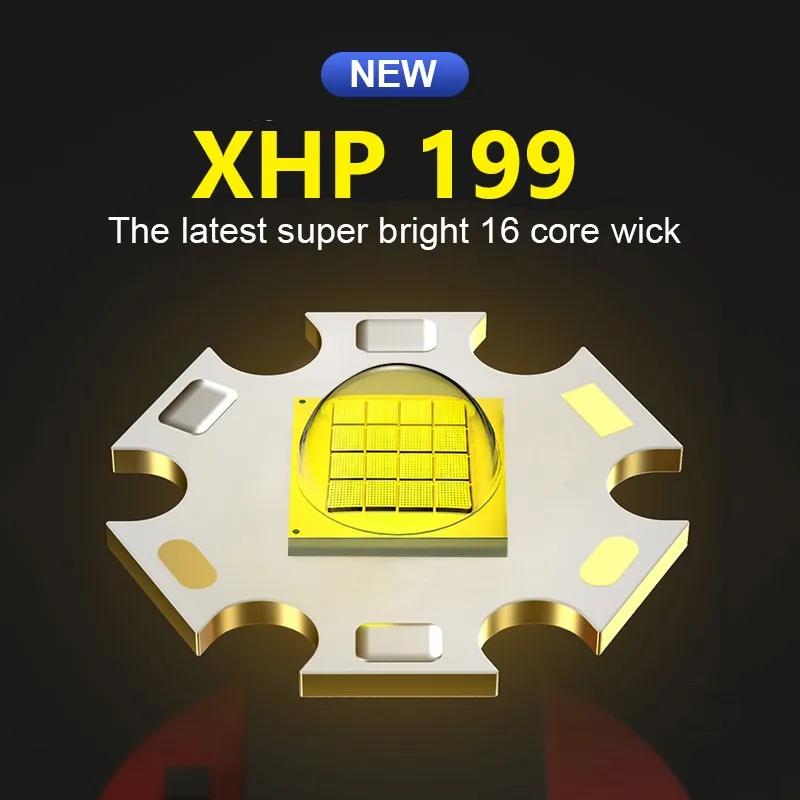 Product Name: 새로운 XHP199 16 코어 윅 슈퍼 강력한 Led 손전등 18650 야외 토치 라이트 XHP90.2 방수 IPX8 충전식 플래시 라이트