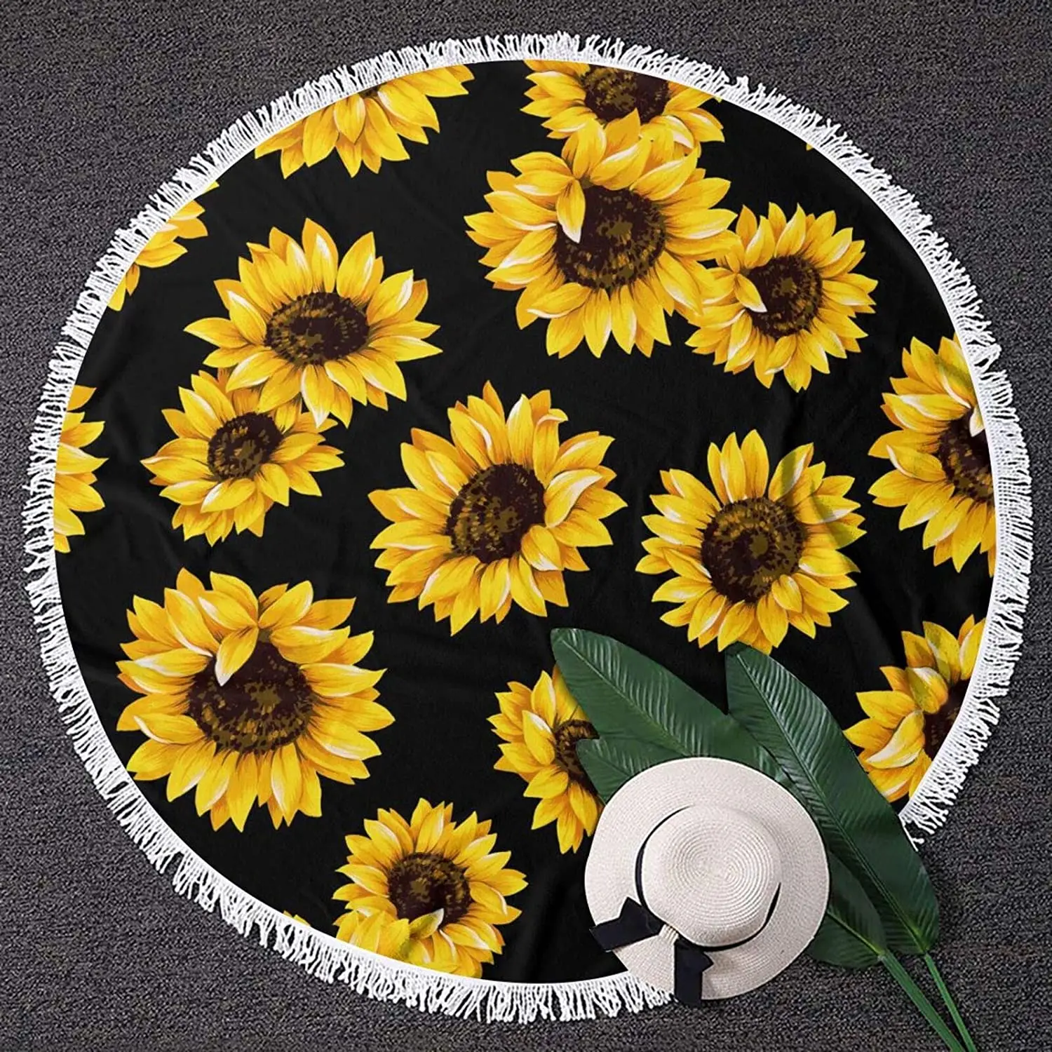 Product Name: 마이크로 화이버 라운드 비치 타월 59 인치, 숄 요가 매트 해바라기 패턴 서클 비치 매트, 태슬 포함 다목적 비치 타월